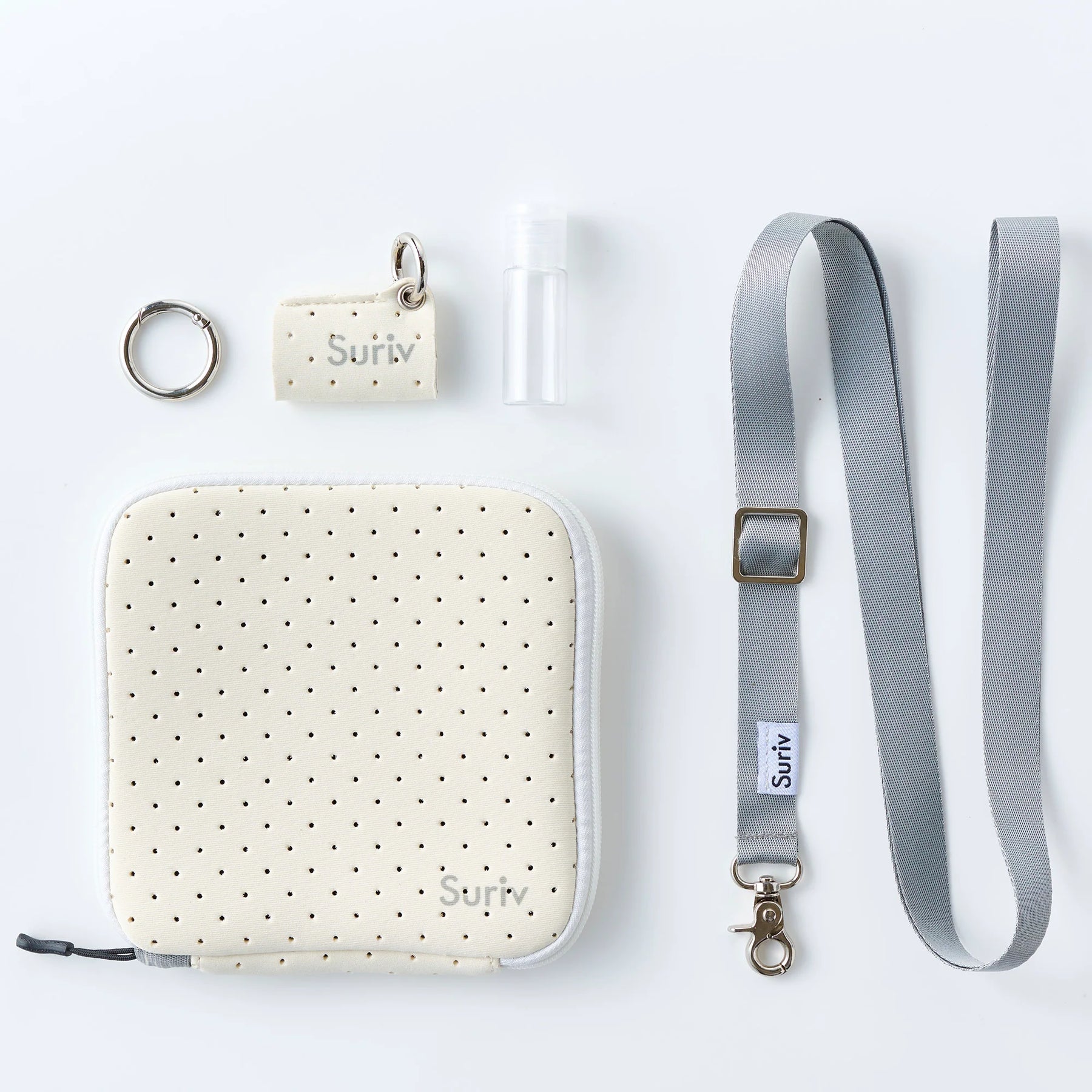 Suriv <クリーム> まるごと洗えるマスクケース(消毒ボトル&ホルダー付)